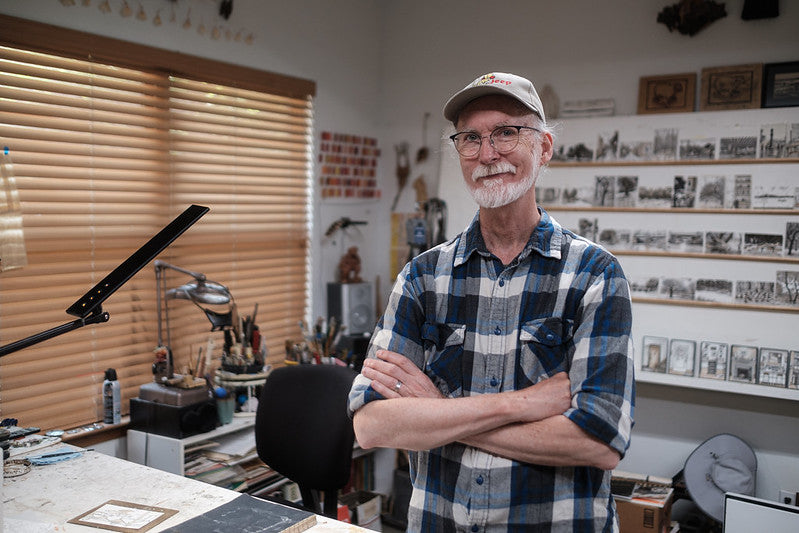 Brad Ford Smith is a visual artist and art conservator living in Dallas. His work explores a wide variety of topics, from the influence of dyslexia on sight perception, to tongue-in-cheek pseudo-science exhibitions under the guise of the Nomadic Fungi Institute, and his current focus, drawing local spots of historic and cultural significance which have often morphed into urban detritus.