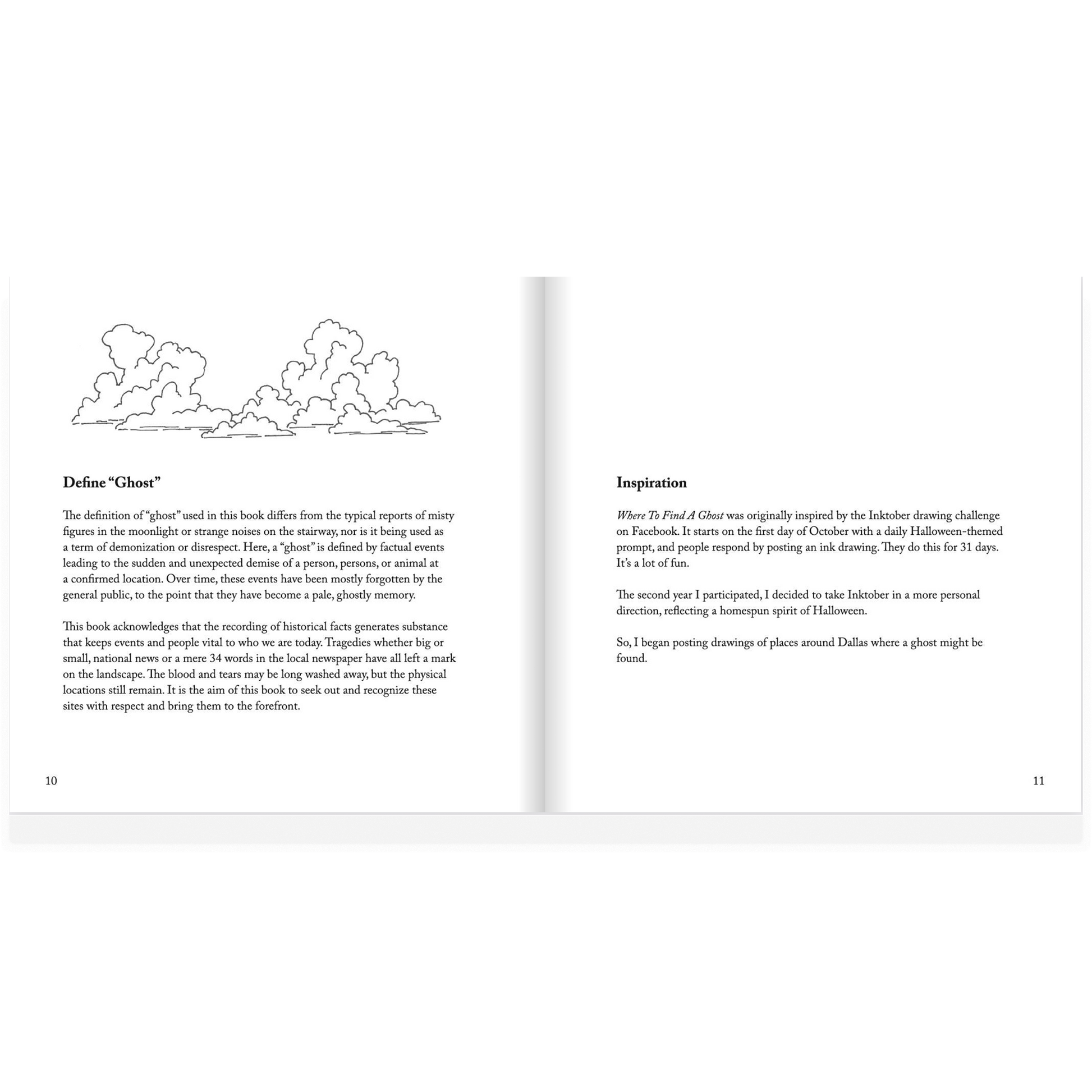 “Where To Find A Ghost” is a new chapbook collection of drawings and stories depicting locations in and around Dallas where “historic events of calamity and tragedy” have occurred.